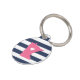 Let your furry friend show some home state pride with this cute Minnesota pet ID tag. Design features a white silhouette map of the state of Minnesota in pink with a white heart inside, on a preppy navy blue and white stripe background. Add your pet's name and contact information to the back in white lettering on a pink background.