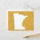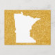 The shape of the state of Minnesota in white. Map shape in white against a photo of gold glitter. Faux golden glitter postcard.