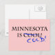 A funny design that reads Minnesota is cool! and cool is crossed out and replaced, in blue ink, by the word cold! Everyone knows Minnesota has tough winters with lots of snow and freezing temperatures, but it's also an eclectic place with nature, beautiful cities, a lively music scene, and 10,000 lakes.