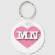 This key chain features a cool pink heart with a white-washed centre containing the bold, white, upper case letters MN, the official abbreviation for Minnesota, the north star state.