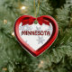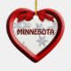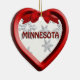 A graphic design of snowflakes in a 3D style red frame on a heart shape Minnesota Christmas ornament. The ornament has text templates for your personalisation. ©2012charmainepaulson