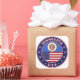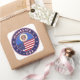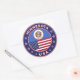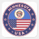 Badge of Minnesota design with flag of Minnesota and flag of USA colors, rounded shape.