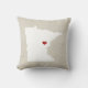 Minnesota state pillow with heart placed for hometown. You can customise heart placement for different hometowns. Faux oatmeal linen background with white state and red heart. Makes a great wedding or new home gift!