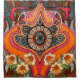 Originally drawn in ink, retro style floral available in henna, green, purple and soot.