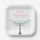 Mint and Coral Floral Bird Baby Shower Paper Plate