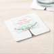 Mint and Coral Floral Bird Baby Shower Square Paper Coaster
