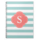 Mint and Coral Stripes Monogram Spiral Notebook