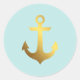Mint and Faux Gold Foil Anchor Classic Round Sticker