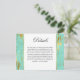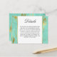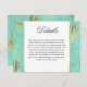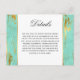A wedding details card in lovely contemporary style to provide your wedding guests with all the info they'll need surrounding your wedding day. Give them directions to the wedding, hotel information, your wedding web site, special events or any other pertinent information they'll need for the big day. This details card has a mint and gold abstract marbled pattern with faux foil gold veining. Edit the sample text with your specifics. You can move the text to re-centre it after making your changes.