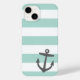 Mint and Grey Nautical Stripes and Anchor Case-Mate iPhone Case