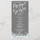 Silver, grey and mint twinkle lights glitz design printed rack card wedding programs with white text.