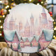 Mint and Pink Cosy Christmas Market - Winter Scene Round Cushion