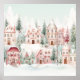 Mint and Pink Cosy Watercolor Winter Scene Poster