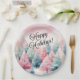 Mint and Pink Fir Trees Winter Scene Paper Plate