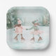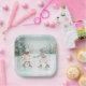 Mint and Pink Girls Skating - Winter Scene Paper Plate