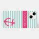 Mint and Pink Nautical Stripes Anchor Monogram Case-Mate iPhone Case