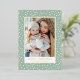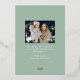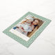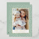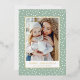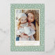 Modern holiday card featuring your vertical photo on the front framed in gold foil with a background of mint green and white snowballs. Personalise the front of the card with your custom greeting and family name in bold gold foil lettering. The foil Christmas card reverses to display an additional photo with your custom message displayed below.