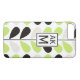 Customisable electronics case featuring mint and black retro floral pattern. Other colours and similar items are available in my store.
