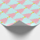 Mint blue holiday gift wrap with baby pink Christmas trees.