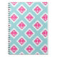 Mint Blue, Pink, White Anchors Nautical Pattern Spiral Notebook