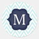 Mint Blue & White Chevron Navy Monogram Design Classic Round Sticker