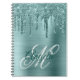 Mint Brushed Foil Glitter Drip Fancy Monogram Notebook