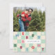 This whimsical holiday photo card features the phrase "Merry & Bright" in bold, colorful lettering, placed over a modern, green checkerboard pattern. The back of the card features a coordinating checkerboard pattern adorned with a bunch of festive stars. This playful card is perfect for kids and teens!