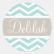 Mint Chevron Tan Monogram Classic Round Sticker