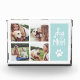 Show off your furry bestie with this cute, modern photo collage block featuring 4 favourite square photos of your dog arranged in a grid layout. "Dog Mum" appears at the right in white lettering with a pawprint illustration, on a pastel mint green background.
