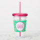Mint Floral and Monogram Acrylic Tumbler