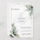 An elegant trendy light grey monogram initials stylish modern foliage theme white wedding invitations.