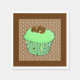 Paper napkins in a Cupcake with green mint frosting topped with chocolate curls, in a decorative, green fractal cupcake wrapper, on a brown and beige swirl patterned background