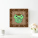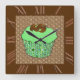 Mint Frosted Chocolate Cupcake, Fractal Background Square Wall Clock