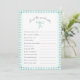Editable game title and text questions for baby shower or bridal shower. Features a hand painted bow with gingham plaid Mint Green frame and backer.