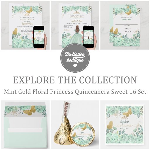 Mint Gold Floral Butterfly Quinceañera Quince Invitation