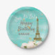 Mint green / teal blue and gold Paris / Eiffel Tower personalised birthday party paper plates. Will work for any age, but is designed to match our Sweet 16 set.