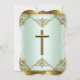 Mint Gold Pearl Damask Cross Baptism Christening 3 Invitation