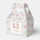 Send your baby shower guests home with this adorable and girly chic custom favour box, perfect for your tea party themed parties and events! The box is customisable, to edit the text click "personalise this template". This custom favour box features a mint green and gold rose and tea party themed pattern background and a hand drawn illustration of two teddy bears dressed in fancy dresses and sipping tea from cute pink tea cups. This makes for a fun and unique baby shower party favour and take home gift!