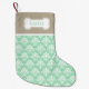 Mint Green And Beige Damask With Bone & Pet's Name Small Christmas Stocking