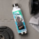 Personalised photo and name Digital pour painting marble blue and mint green fluid art water or coffee bottle.