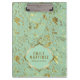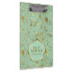 Mint Green And Gold Floral Fabric Pattern Clipboard