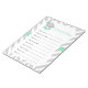 Mint Green and Grey Elephant Baby Shower Game - Wishes for Baby Notepad ready for you to personalise. ⭐This Product is 100% Customisable. Graphics and / or text can be added, deleted, moved, resized, changed around, rotated, etc... 99% of my designs in my store are done in layers. This makes it easy for you to resize and move the graphics and text around so that it will fit each product perfectly. ⭐ (Please be sure to resize, change, add, delete or move any graphics or text if needed before ordering) You can also "TRANSFER DESIGN" on other Zazzle products and adjust the design to fit most of Zazzle items. (button is down on the right side of the page) Some of the text graphics have ready to fill in the box(es) or you can Click on the "CUSTOMIZE" button to add, move, delete, resize, background colour or change any of the font or graphics. The design is made with high resolution vector and/or digital graphics for a professional print. ⭐NOTE: (THIS IS A PRINT. All zazzle product designs are "prints" unless otherwise stated under "About This Product" area) The design will be printed EXACTLY like you see it on the screen and on the product...so please make sure when you do your changes on the resizing of any of the graphics or text that it fits in the areas correctly and that your spelling and wording is how you like it to be in size, colour and font. If you have any questions about the "DESIGN ONLY" or need help please contact me at siggyscott@comcast.net or visit my store link: https://www.zazzle.com/store/designsbydonnasiggy (Copy and Paste) I'll be happy to help. ⭐ All other questions (shipping, refund, the printing, the product, etc...) please contact Zazzle or the Maker ⭐DIRECTLY⭐. Thank you for the support and stopping by my store - DesignsbyDonnaSiggy. © Donna Siegrist ⭐⭐⭐ ZAZZLE promises 100% satisfaction.