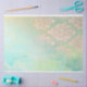 Mint Green and Persimmon Pink Weathered Damask Tissue Paper.
