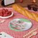 Mint green and pink macaroons on party paper plates perfect for spring and summer get togethers