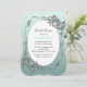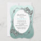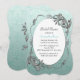Elegant bridal shower invitation, done in a mint green embossed looking damask pattern, with a decorative silver tone floral frame, around the white oval text area. Personalise all the text to suit your event needs. Chose the card stock you want and the invitation shape you like best.