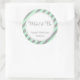 Round sticker for bridal shower favour with mint green and silver glitter design.