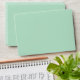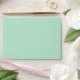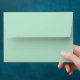 A mint green 5x7" envelope with a mint green and white chevron print inside.
