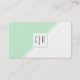 Mint green and white monogram architect modern business cards. The front includes two diagonal stripes one mint green and one white that separate the card in two triangles. A