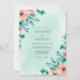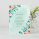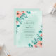 This design showcases a soft seafoam watercolor backdrop layered with vibrant peach poppies and delicate teal greenery. The airy composition creates a refreshing and romantic mood ideal for warm weather events. Artistic floral sprays and lush botanical leaves provide a natural, hand-painted aesthetic.