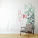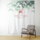 Oriental zen pastel mint green, dark green and white bamboo leaves with a minimalist double happiness symbol within a simple rectangle frame wedding photo backdrop / photo booth / photo prop tapestry. An elegant and stylish asian themed wedding design for the modern and classy couple.